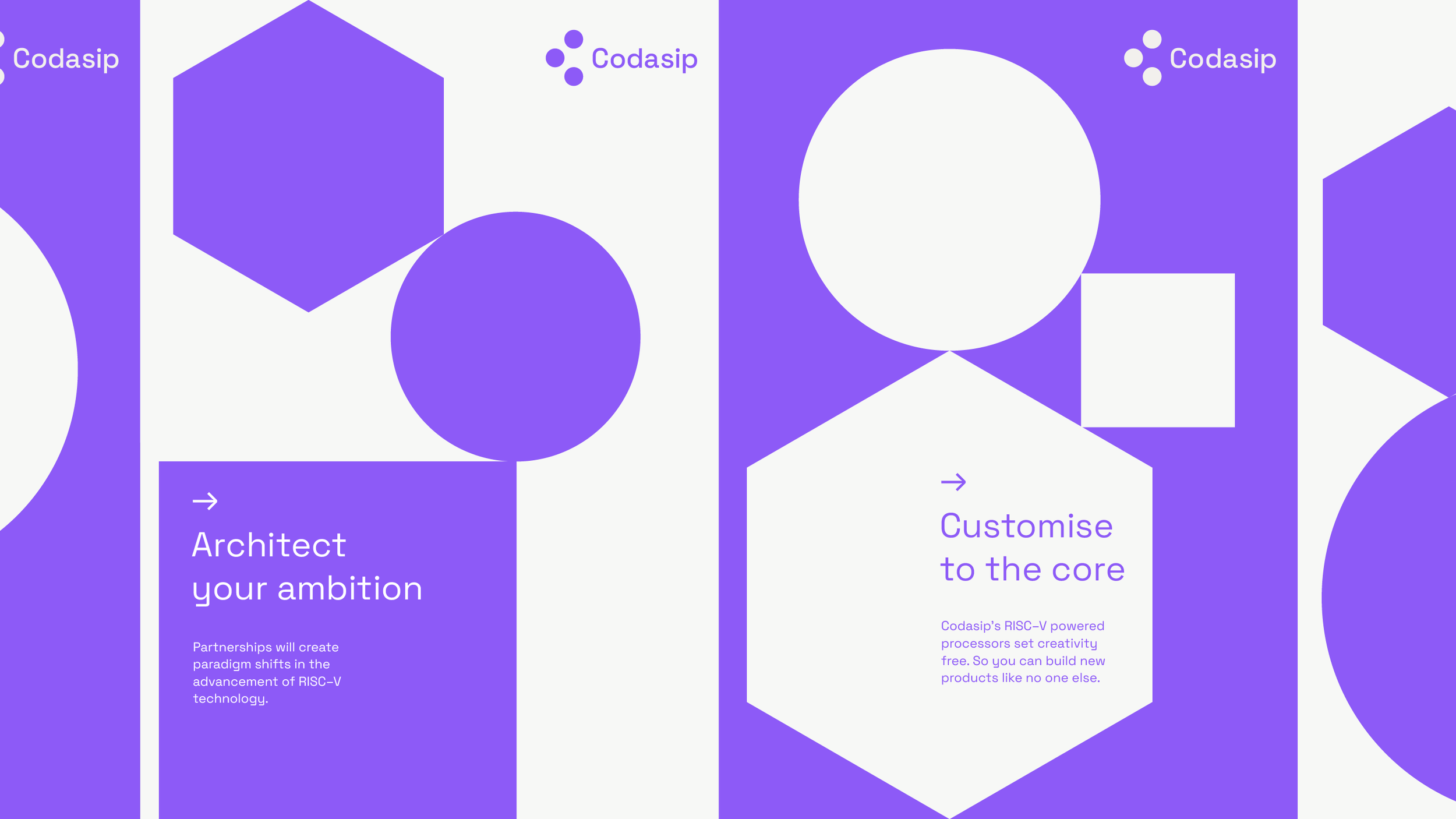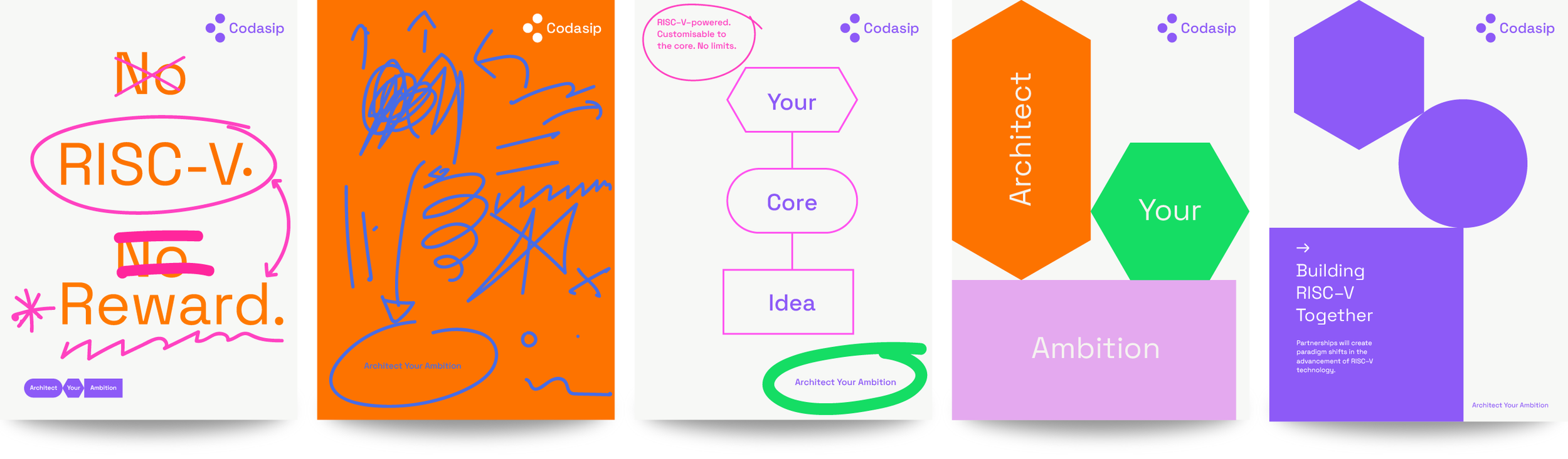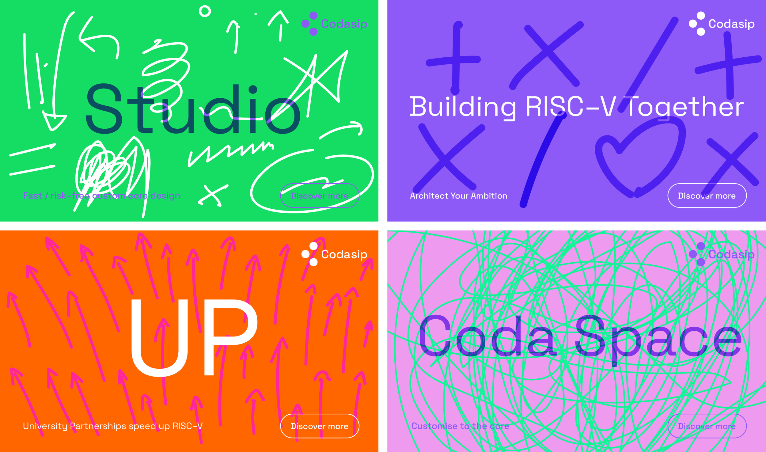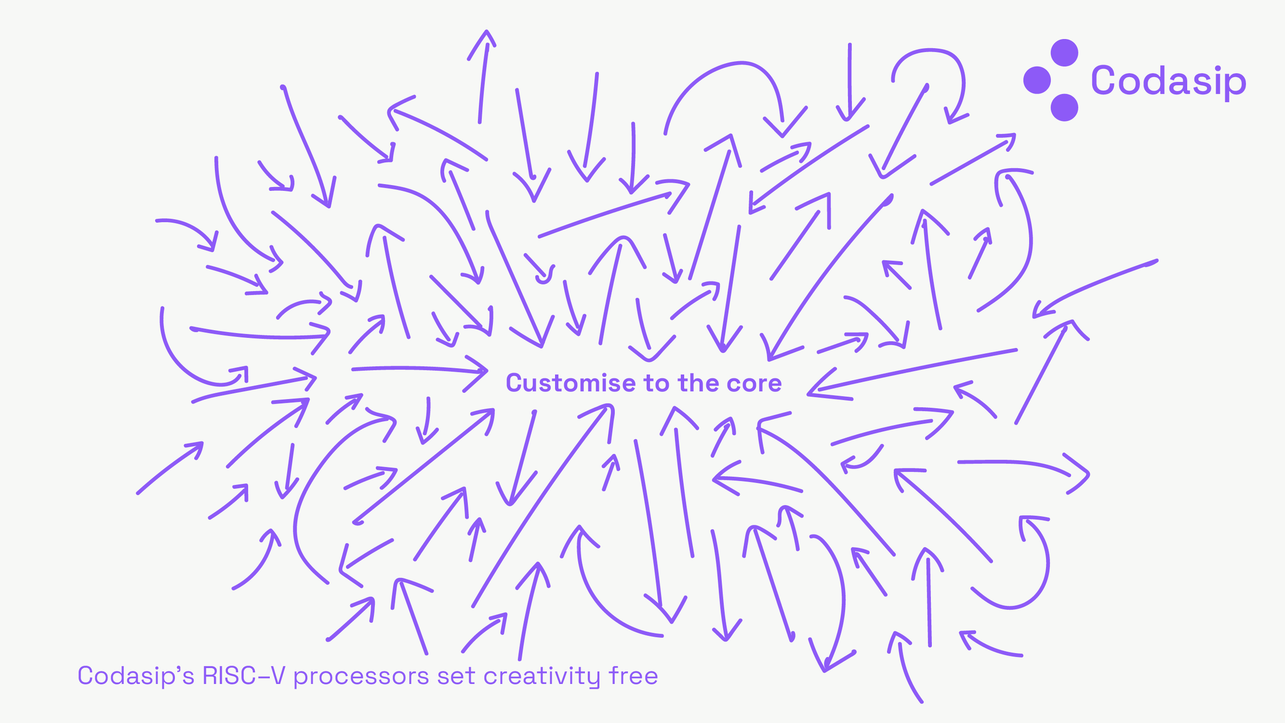 Microchips used to be off-the-shelf, closed designs that needed licensing – this limited creativity. RISC–V changed all that with an open way to define how the core of a chip works, so anyone can customise one. Codasip is Europe’s leading RISC–V custom compute company. Visually the brand is an expression of unstructured creativity, from emotive to measured. Celebrating the playful process of human invention and energy set-free. Customise to the core. Architect your ambition.