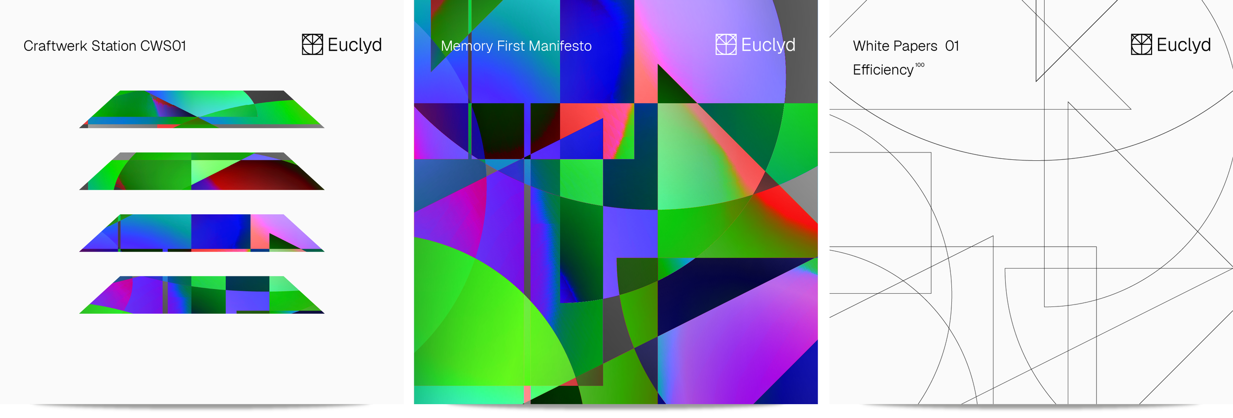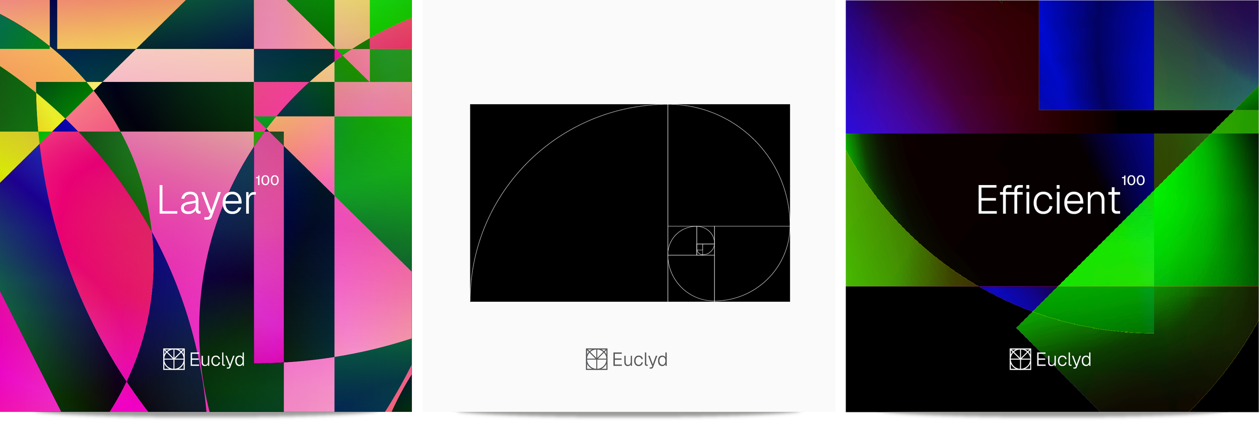 Euclyd create layering technology to build ultra-efficient silicon systems for AI models – reducing energy consumption and increase processing. Named in tribute to Euclid (c.300BCE), the ancient Greek mathematician and Father of Geometry. Visual design reflects the product philosophy of geometric precision – from a symbol made by layering letters to a design system based on the Golden Ratio. Precise, efficient, crafted.